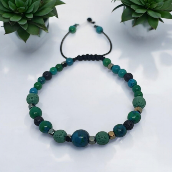 Bratara aromaterapie Green Pheonix, cu cristale de Piatra Pheonix, Lava si Hematit