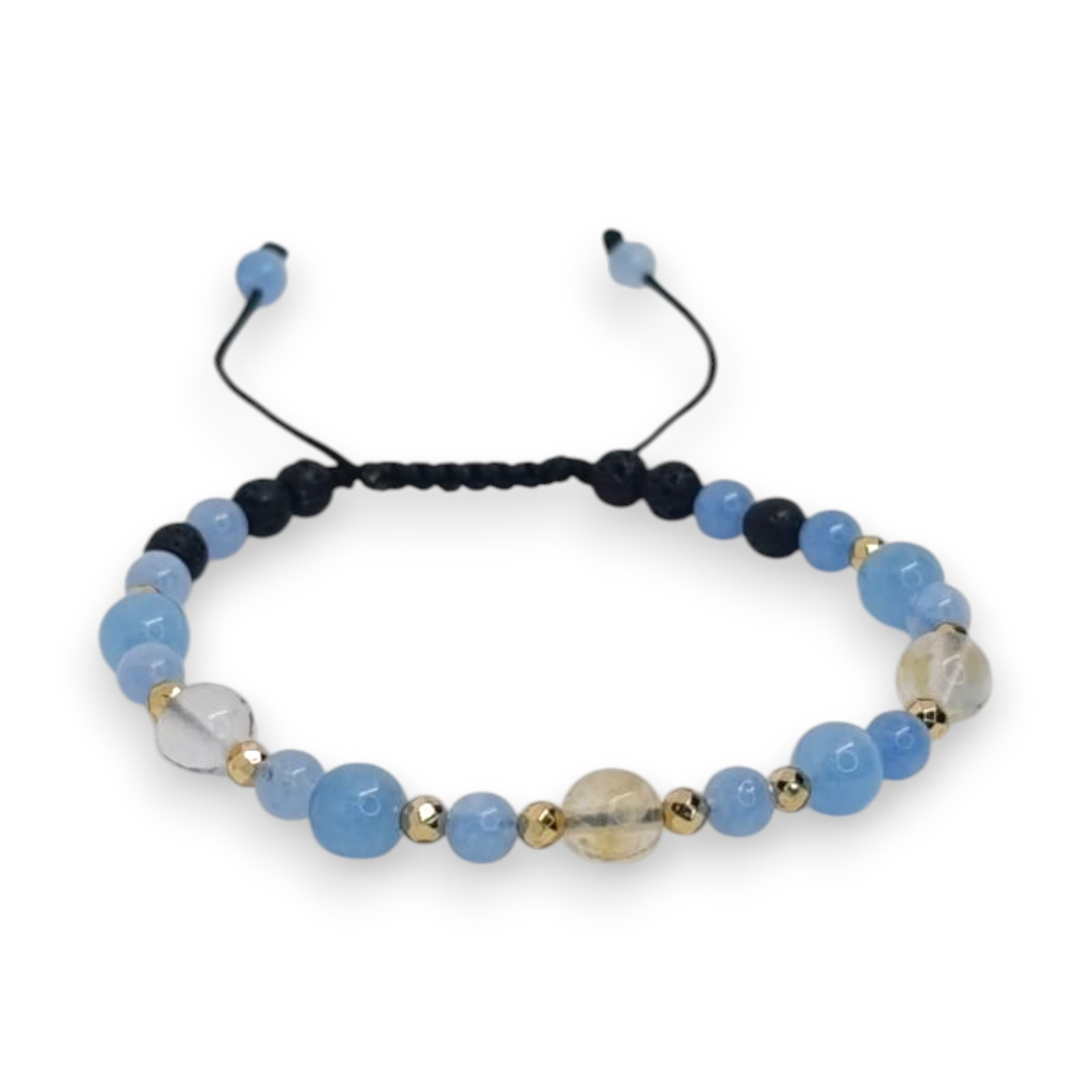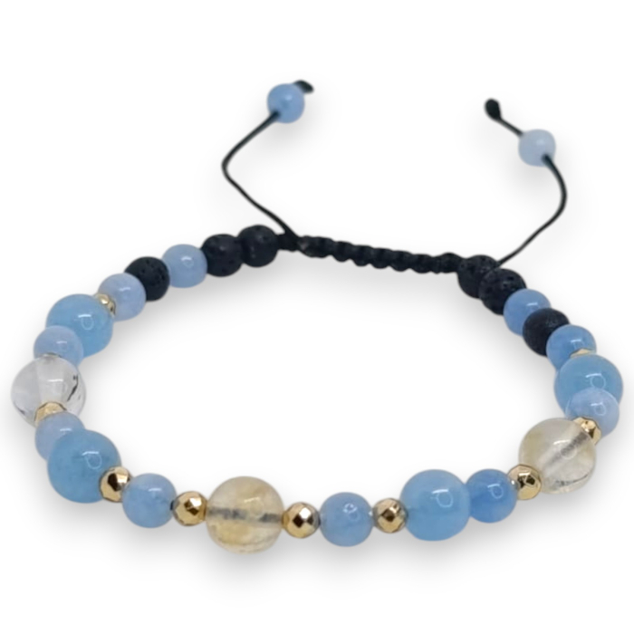 Creata pentru a sustine claritatea mentala, creativitatea si comunicarea, aceasta bratara insoteste energia dinamica si adaptabila a Gemenilor. Lucrata manual cu piatra de lava si cristale de citrin si acvamarin, este o bijuterie eleganta si delicata, cu rol de difuzor pasiv, care te ajuta sa te bucuri de energia pozitiva a cristalelor si de beneficiile uleiurilor esentiale preferate, oriunde ai fi.
