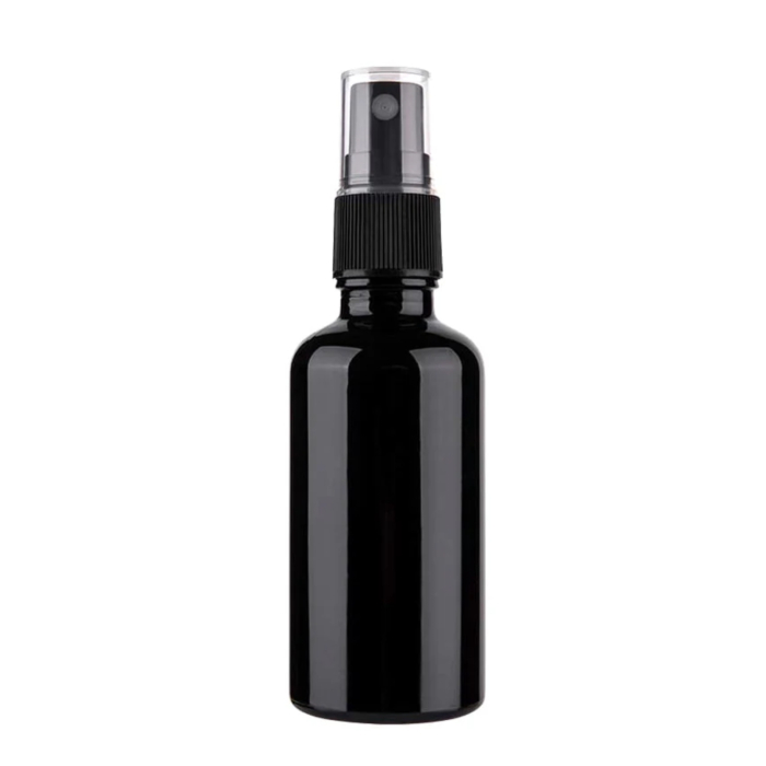 Recipient cu spray din sticla groasa, neagra si lucioasa, ideal pentru pastrarea si pulverizarea parfumurilor, solutiilor anti-insecte DIY si a diferitelor amestecuri pe baza de uleiuri esentiale. Sticluta imbina aspectul elegant cu functionalitatea, protejand continutul si asigurand o utilizare usoara. Sticla complet opaca limiteaza expunerea la lumina, contribuind la mentinerea stabilitatii si calitatii compozitiei. Pulverizatorul de calitate distribuie lichidul uniform, intr-o pulverizare fina si controlata.