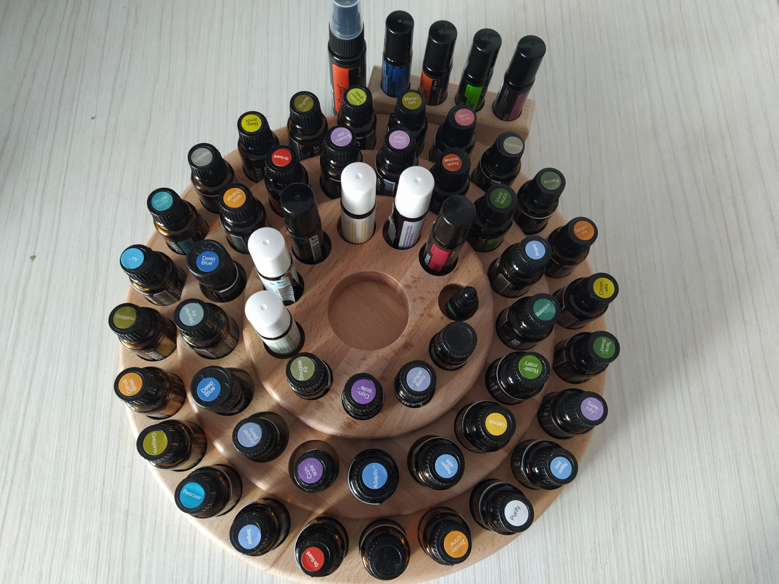 - alaturi de modelul Maxi Circles, este cel mai incapator suport din colectia noastra, proiectat pentru 52 de sticlute: 41 de 15 ml, 11 de 5/10 ml si un ulei purtator