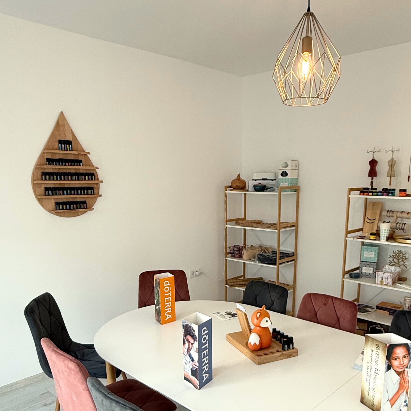 Fie că îl folosești în living, în cabinet sau în zona dedicată aromaterapiei, acest suport aduce un aer natural și elegant încăperii, punând în valoare colecția ta de uleiuri.